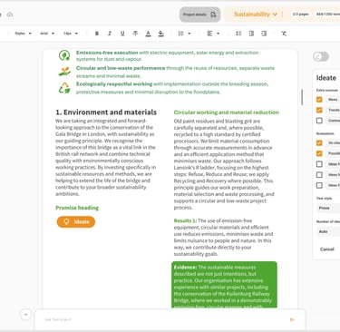 Our AI Ideator is designed to come up with content that is relevant in the context of the specific tender and resonates with your client.