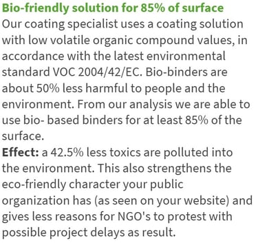 With TenderTools you have a senior tenderexpert available to predict the score of your proposal text. It shows you what is good and what to improve in order to get that 100% score.